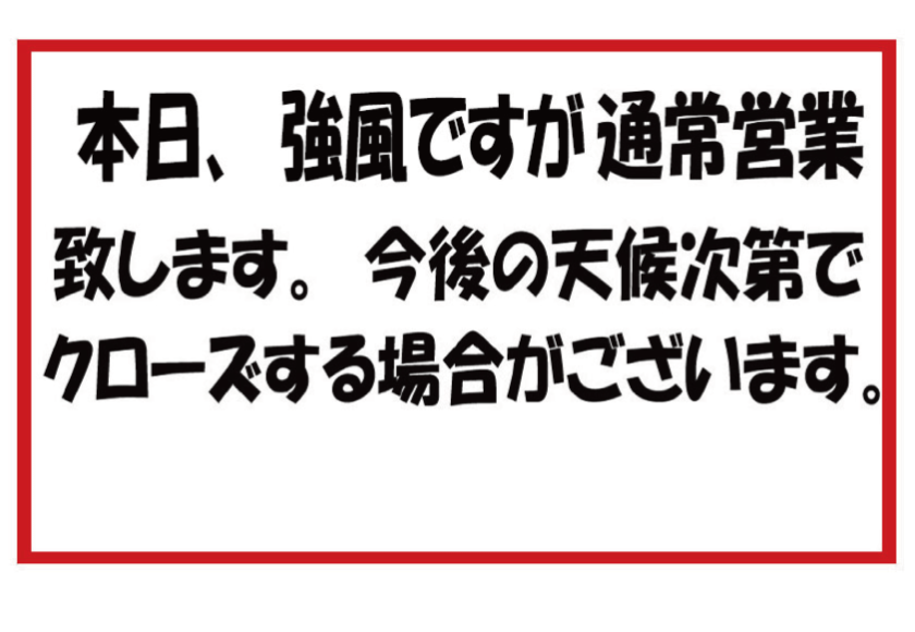 12月15日(月 ) 通常営業 ※強風の為、今後の天候次第でクローズす…