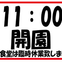 1/22(木)11:00開園です。※食堂臨時休業致します。