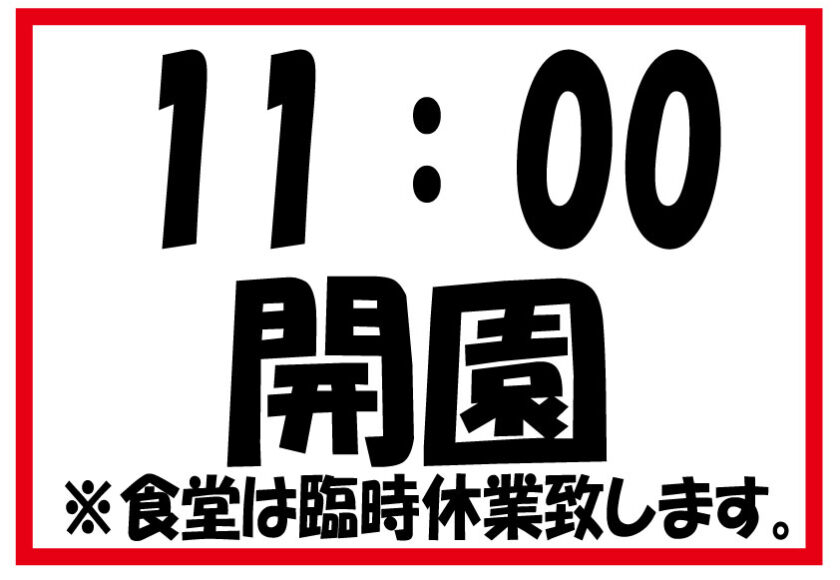 1/22(木)11:00開園です。※食堂臨時休業致します。
